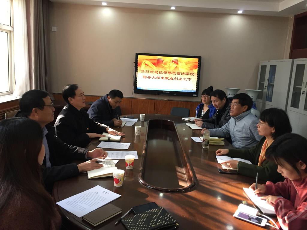 2019年11月26日下午,校党委常委、副书记刘建平在就业指导服务中心主任江秀军,副主任白玉祥的陪同下,来到beat365在线唯一官网就大学生就业创业工作进行专题调研。旨在深入了解beat365官网促进毕业生就业创业工作的做法和工作进展,并围绕当前影响工作推进的重要瓶颈进行深入探讨交流,共同谋划问题的解决办法。beat365在线唯一官网班子成员及辅导员参加了座谈会。
