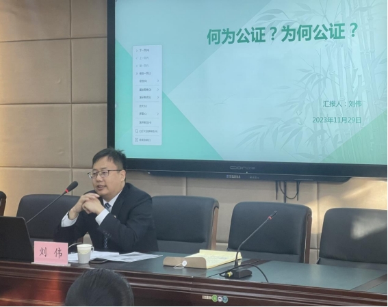 刘伟以忠诚协议的效力问题为引入点,结合自身工作实际,从公证的发展历史、什么是公证、公证规则程序、公证行业业务范围等方面向同学们做了深入的讲解。他强调,公证是预防性证明制度,具有国家公信力和社会公信力,能够有效地保障当事人的合法权益,促进社会秩序和谐稳定。讲座最后,刘伟希望同学们认真学习专业知识,并鼓励同学们加入公证员队伍。