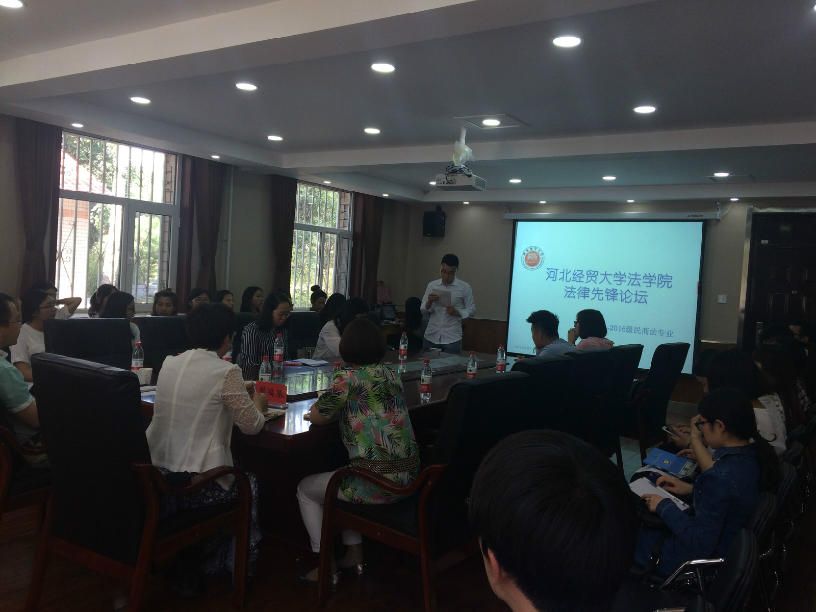 5月9日下午,beat365在线唯一官网2016级民商法专业研究生在学院会议室举办以“以法律视角 析校园裸贷”为主题的法律先锋论坛。北京盈科(石家庄)律师事务所合伙人李科达律师,beat365在线唯一官网樊鸿雁教授应邀任点评嘉宾,学院法硕中心王娟主任出席,beat365在线唯一官网研究生70余人参加。