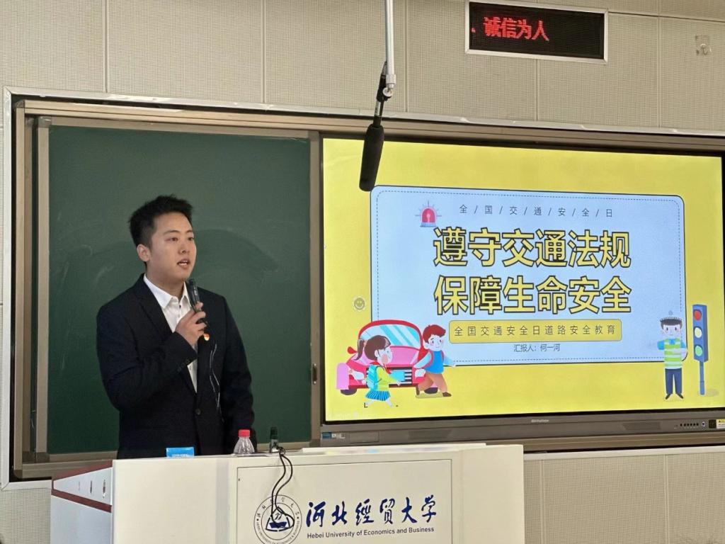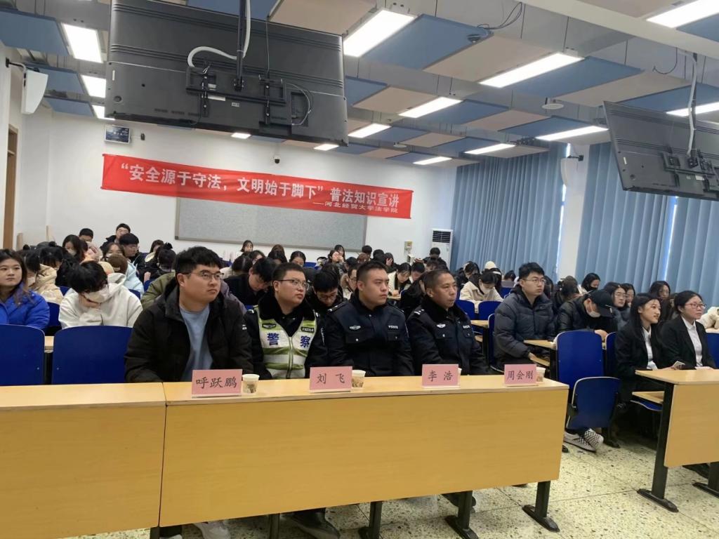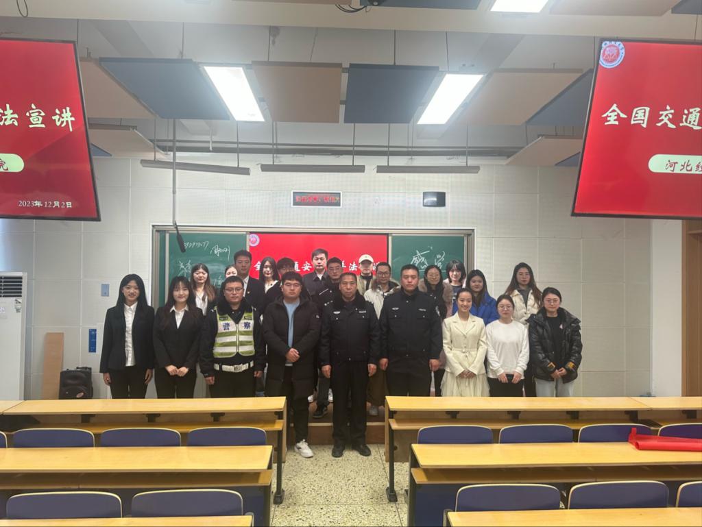 2023年12月2日上午,beat365在线唯一官网于北三教A103举办“安全源于守法,文明始于脚下”全国交通安全日普法知识宣讲。杜北街道司法所呼跃鹏、石家庄市新华区交警大队周会刚警官、李浩警官、刘飞警官出席本次活动,beat365在线唯一官网学子共90余人参加。