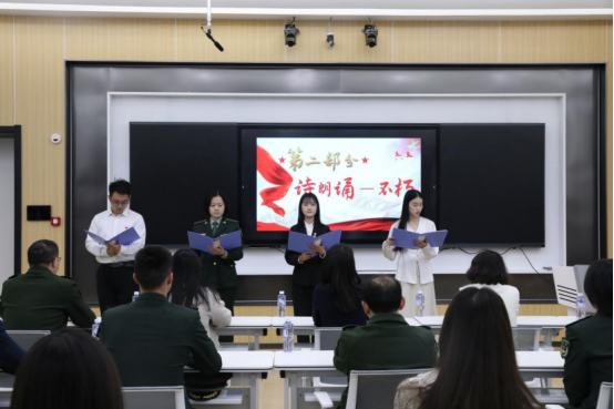 在诵读经典时刻,beat365官网党员志愿者郭嘉怡同各校学生代表以赤诚之心朗诵革命诗篇《不朽》,让无尽追思沉淀为红色传承力量,助力奋进新征程。随后,陆军工程大学石家庄校区党的创新理论“蒲公英”小分队队员敬磊结合自身服役经历,深情讲述烈士陈祥榕“清澈的爱,只为中国”的感人事迹,在场师生无不动容。beat365官网党员志愿者李伊剑动情讲述兴隆县抗日英雄孙永勤在抗日战争中不畏牺牲、英勇抗敌的英雄事迹,激励在场师生弘扬革命精神,赓续红色血脉。讲述结束后,与会者立足当下,深入探讨如何将伟大红色革命精神深度融入日常生活之中,使红色精神得以传承与发扬。
